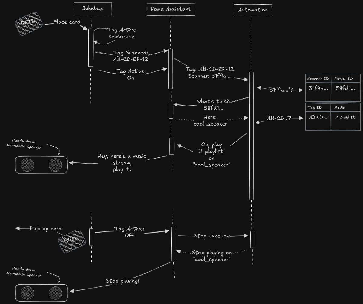 Just as a reminder, here’s an overview of how the Jukebox interacts with the Home Assistants.