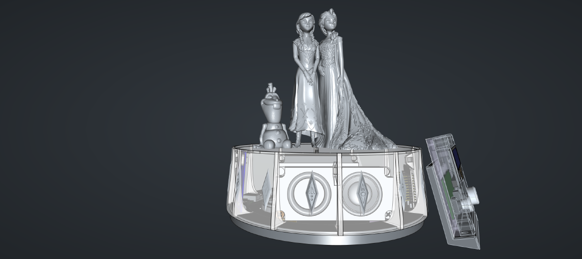 It was time to spend some quality time with FreeCAD. Idea was to make the figure stand on a base tall enough to house the speakers. As a bonus, a slightly taller base helps diffuse the lights so that the individual LEDs will not be as visible on the outside.