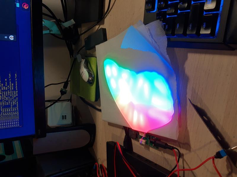 return;This sets all diodes to a specific color. I picked this color because it’s easy on the eyes, bit pinkish, and reduces strain when reading. “Voronoi” effect is more complex. I wanted an effect which lights up each partition in the Voronoi pattern individually, and smoothly transitions colors for each of the partition. Also wanted to make sure that colors used will resemble an actual monarch butterfly. Lambda expression for this effect is evaluated every 1 ms.