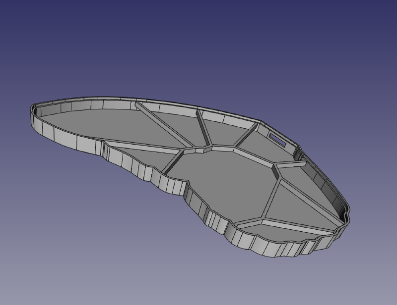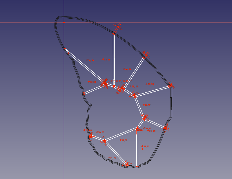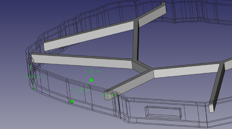 Once wall is ready, it’s time for the Voronoi pattern. This actually takes some manual drawing. Pattern imported from SVG is handy, but can’t be directly extruded as all the lines are one dimensional. FreeCAD’s sketching tool helps here, but care has to be taken to ensure that the pattern overlaps with walls. It won’t be possible to print this part, otherwise.